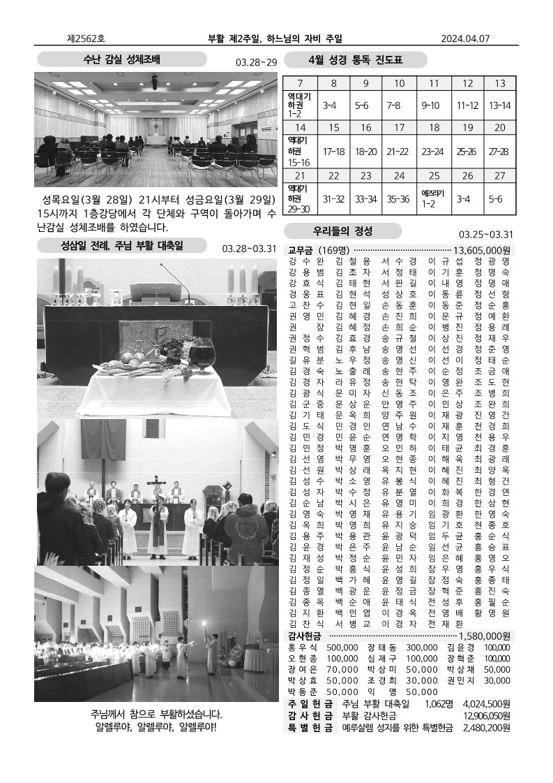24년 04월07일 부활 제2주일, 하느님의 자비 주일